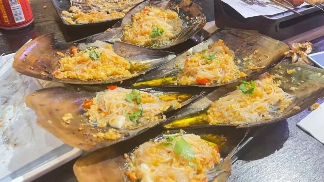 再来一打蒜蓉烤鲜带子,将带子肉剪成蒜瓣大小,全方位包裹上调味料和粉丝,食材摆得满满当当,蒜香十足、鲜嫩入味,每口都是吃得到的新鲜。
