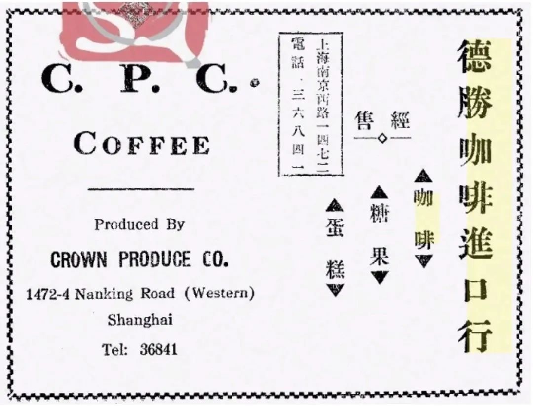 彼时沪上咖啡馆中所售咖啡,大多为三个牌子,CPC、SW和Maxwell。Maxwell即麦克司惠尔,亦称为洋房牌、墨屋咖啡 ;SW常被译为“爱斯特别流”,皆为美国所产之咖啡。CPC为德胜咖啡行所出品,为宁波人张宝存于1935年在百老汇路22号所创办的咖啡豆进口商行,CPC为张宝存英文名字的缩写。