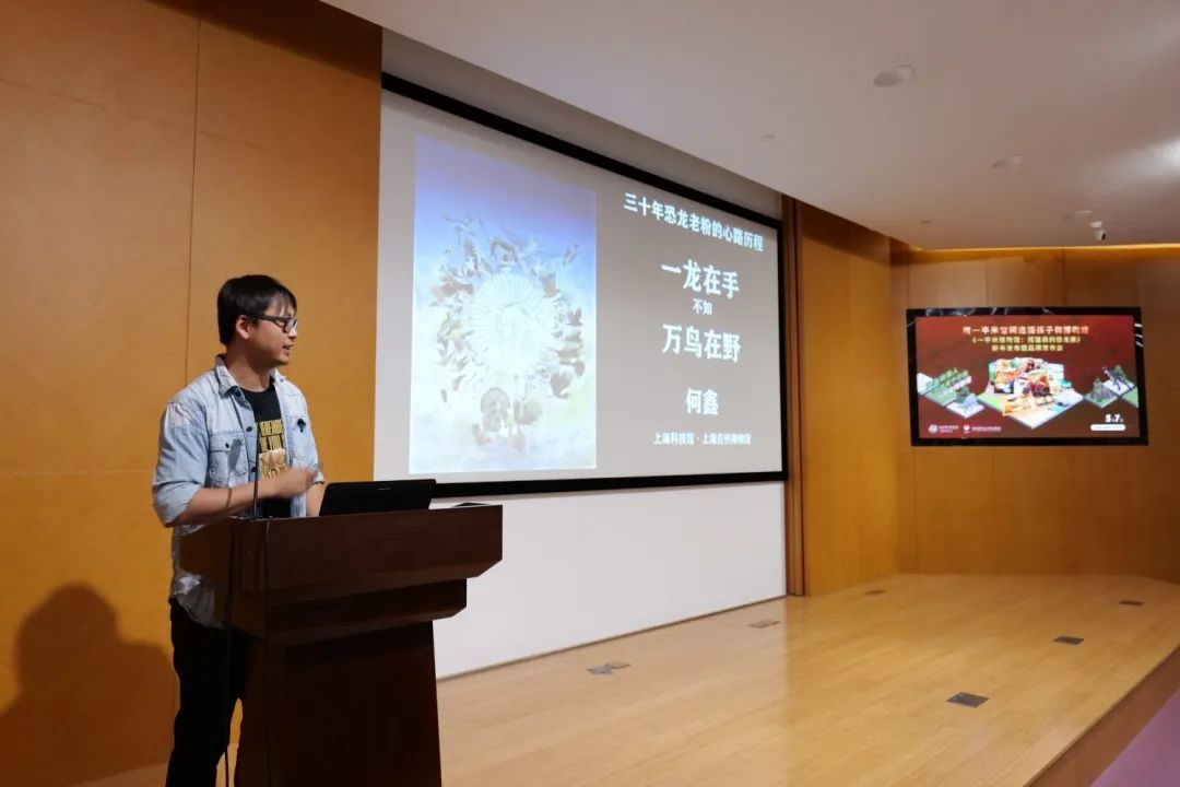 在今天(5月7日)上海自然博物馆开展的一场科普活动中,参加活动的孩子们变身为博物馆策展人,通过科普新书《一平米博物馆:搭建我的恐龙展》,沉浸式体验“挖掘和复原一只恐龙”“搭建一场恐龙展览”的过程,激发孩子们对科学的好奇心和热爱。