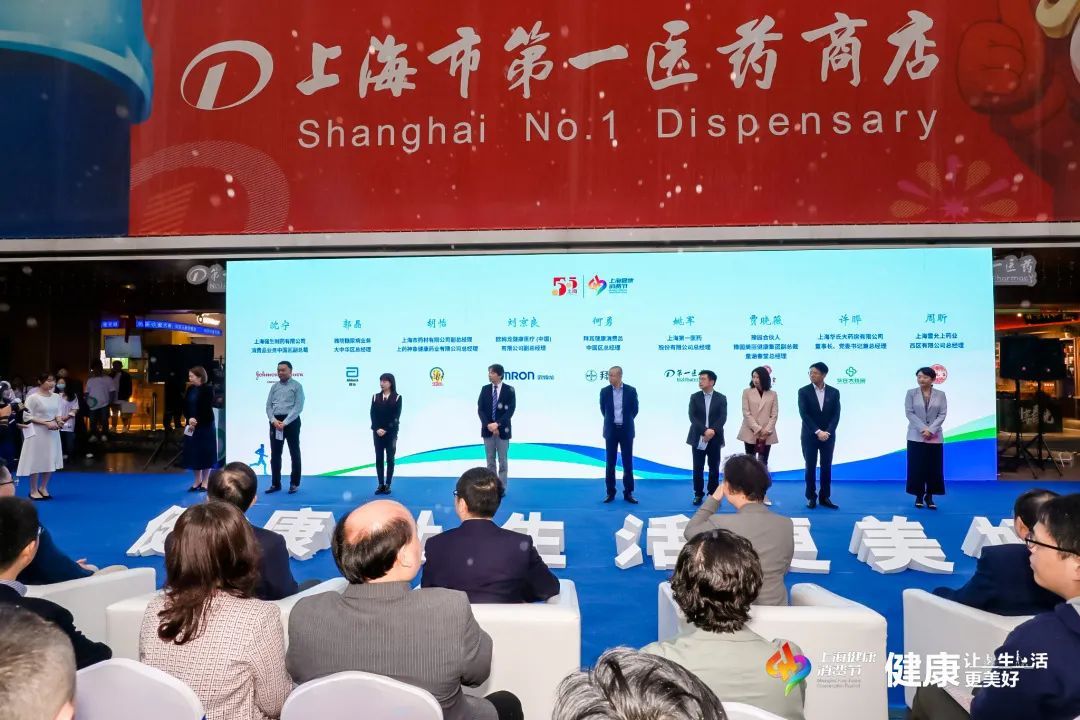 启动仪式现场播放了分会场第一医药携手斜土街道创建的健康服务新模式启动环节,零售药房走进肇清片区“生活盒子”为社区居民提供健康检测、义诊讲座、新品体验、医疗器械维修等综合健康服务,让零售药房成为上海市民“家门口的健康守护者”。