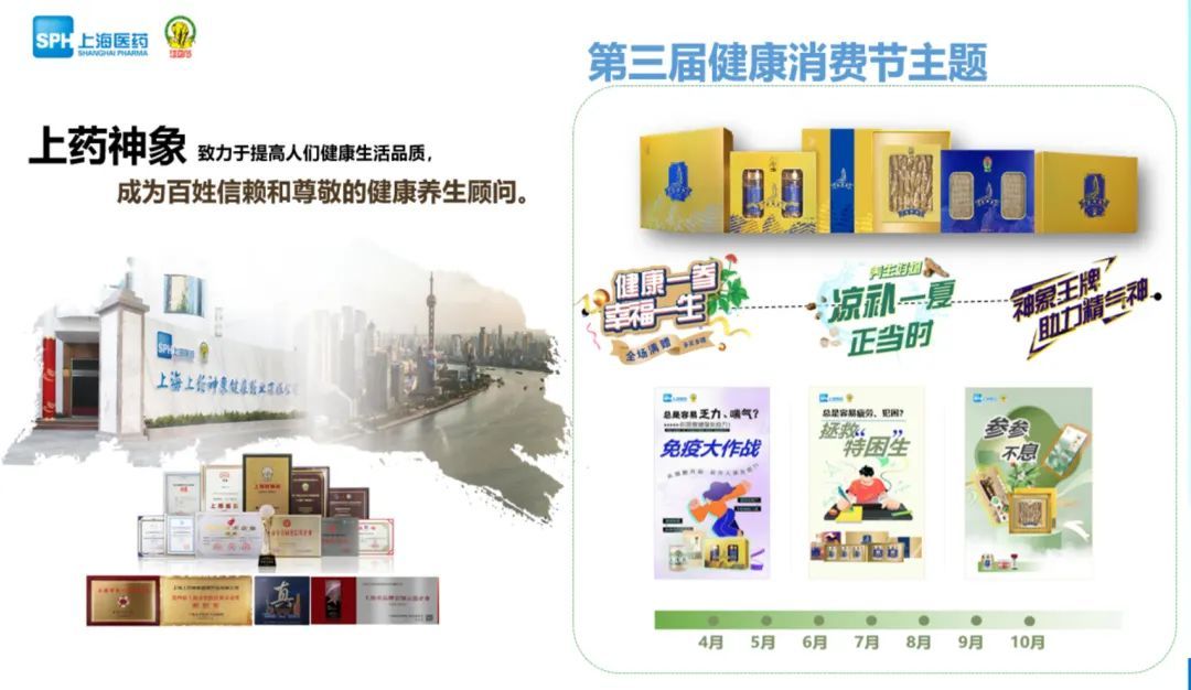 在健康消费节期间,上药神象以荣获“上海礼物”明星品种野山参粉,享誉沪上60载的神象西洋参为主产品阵营,以“凉补一夏”活动为载体,为大众提供专业、便捷和高品质健康服务。