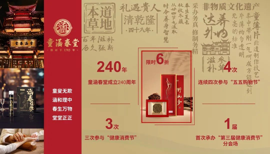 现场还连线了老字号童涵春堂分会场,今年正值童涵春堂240周年,看老字号如何引领健康消费新理念,打造国潮养生样板店,迎来精致养生新潮流。