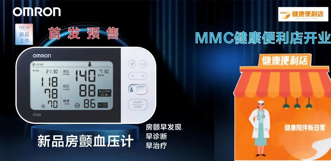 欧姆龙健康医疗携手第一医药商店,为广大消费者带来慢病管理解决方案“MMC健康便利店”,更有搭载房颤监测功能的血压计首发预售,进口血压计特价放松等福利,不断为百姓健康构筑保障。