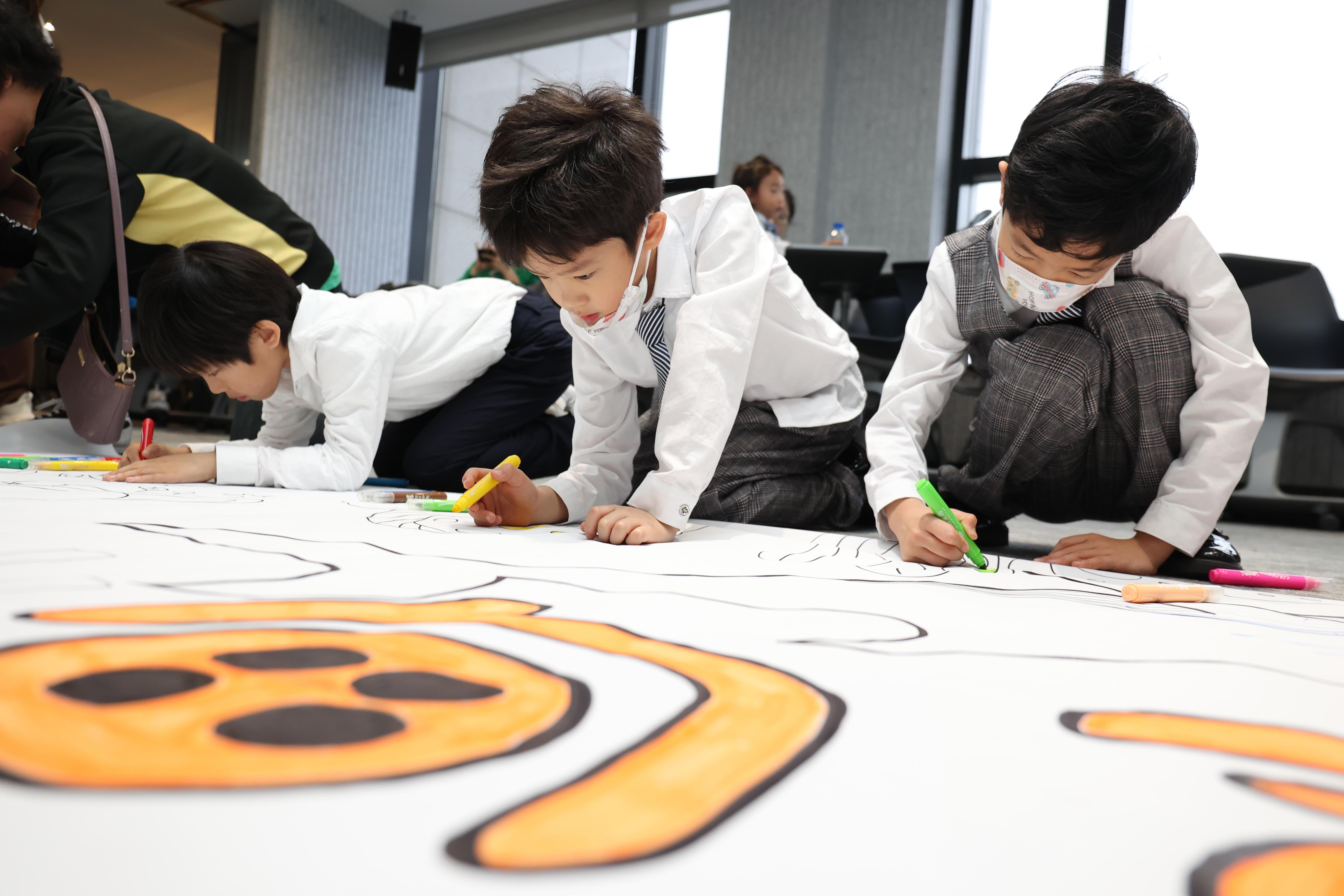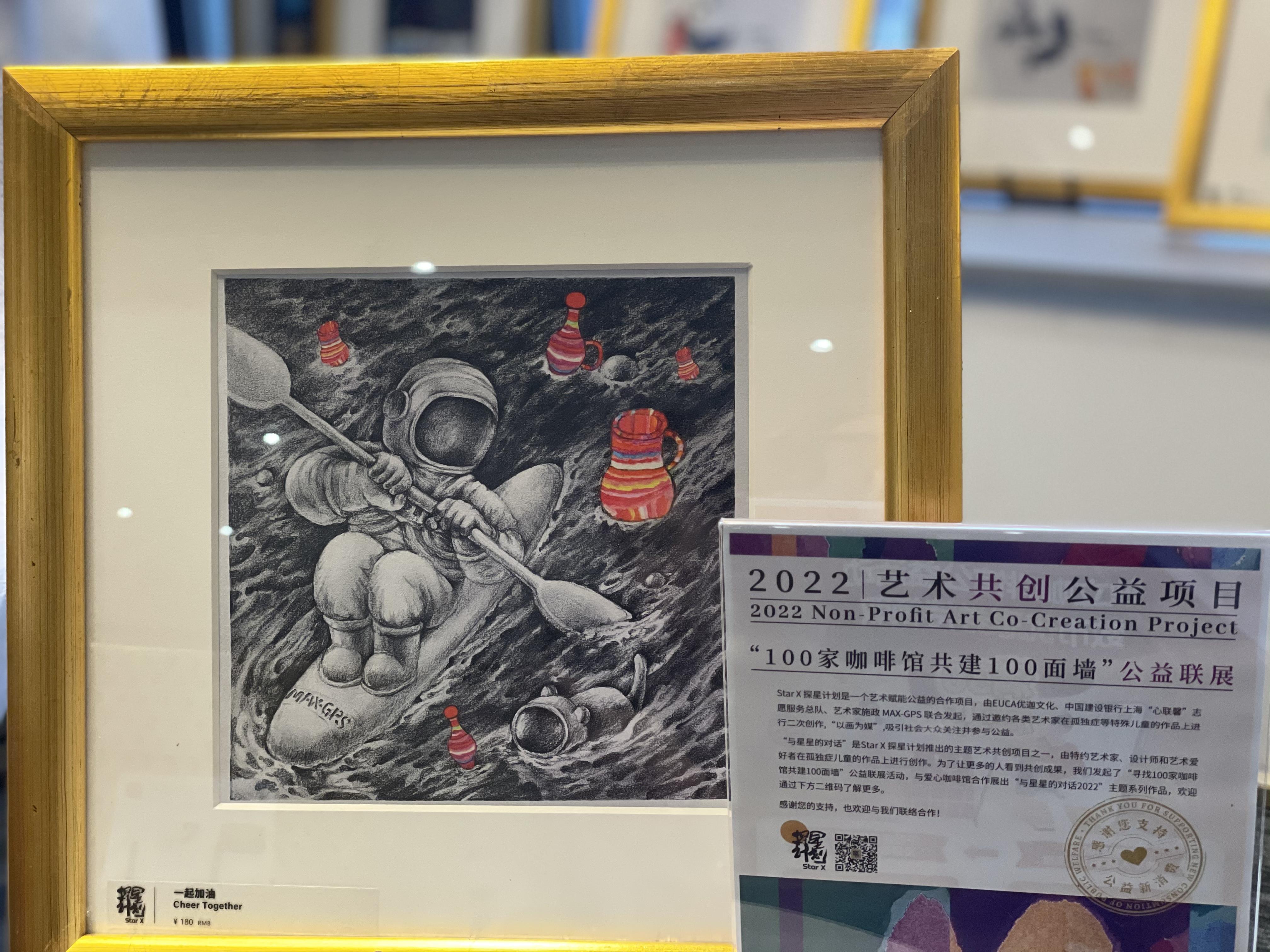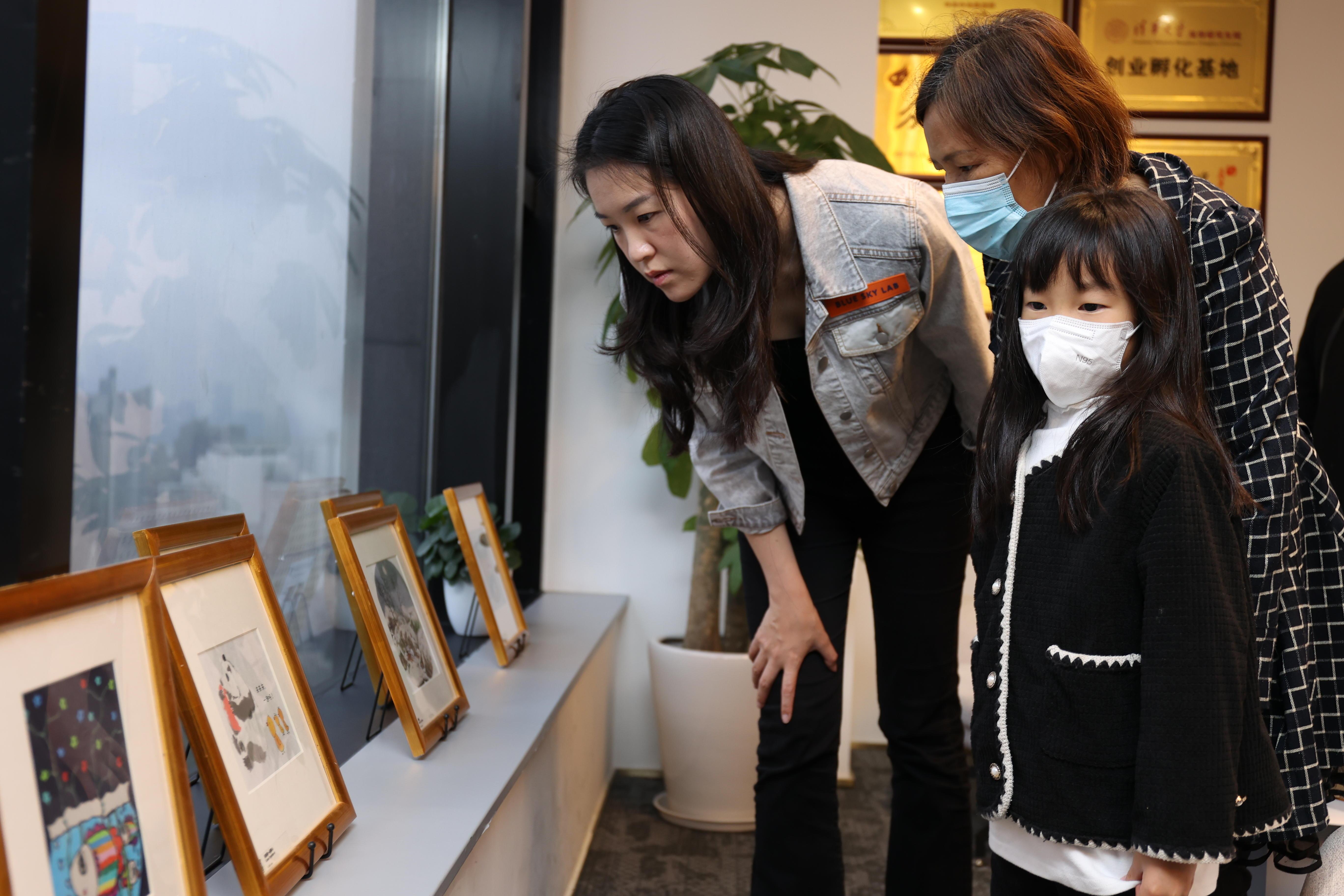 此外,辖区爱心企业将艺术家与儿童共创的作品带到了现场进行了展示与义卖,现场所得收益全部捐给街道红十字会。