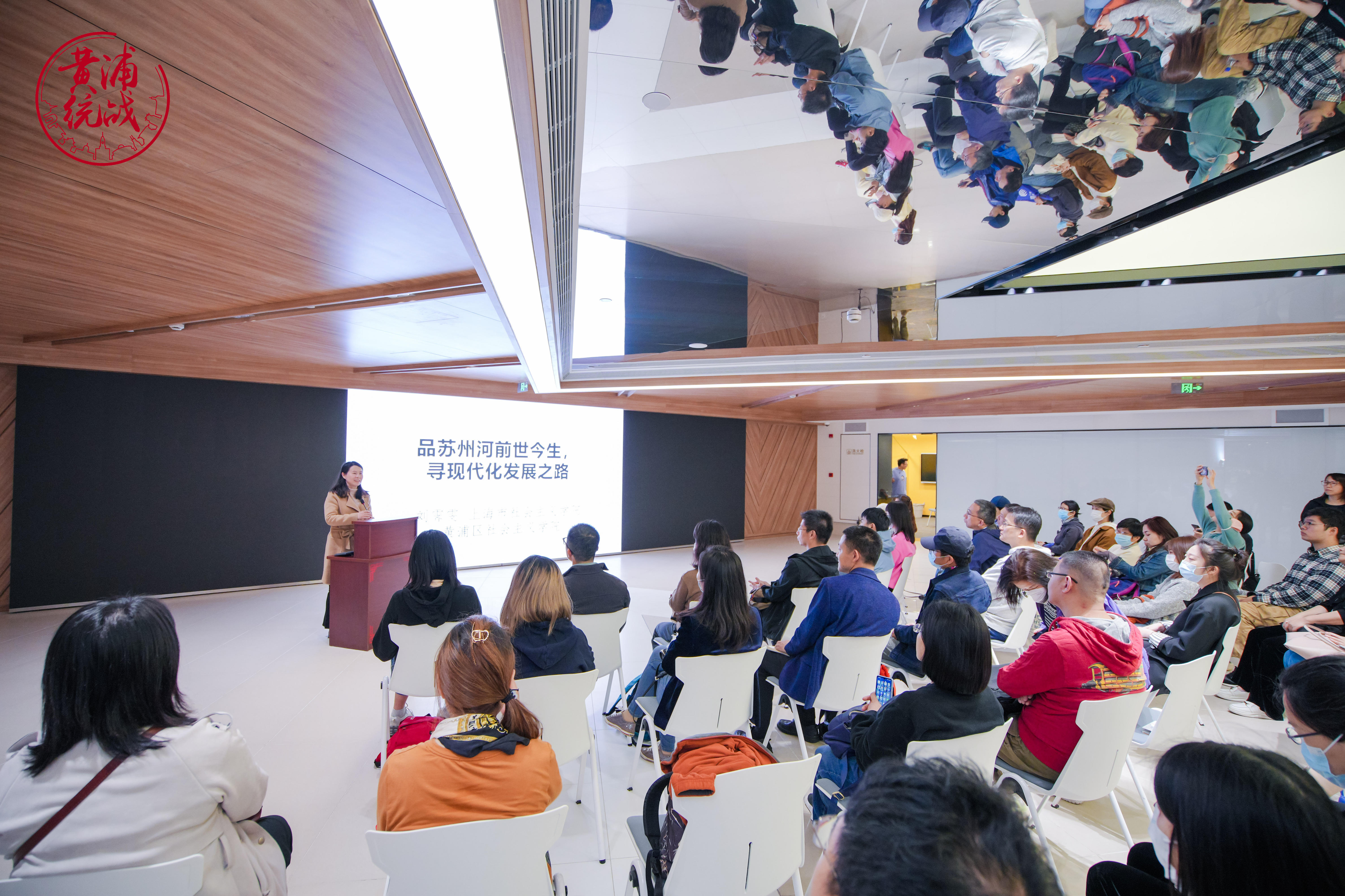 现场,上海市社会主义学院新的社会阶层人士研究中心副主任、讲师刘霁雯就苏州河现场教学课程的开发作了总体的介绍,对课程设计和整体策划做了讲解。中共黄浦区委党校研究室付羚教师就此次行走路线作了导读。
