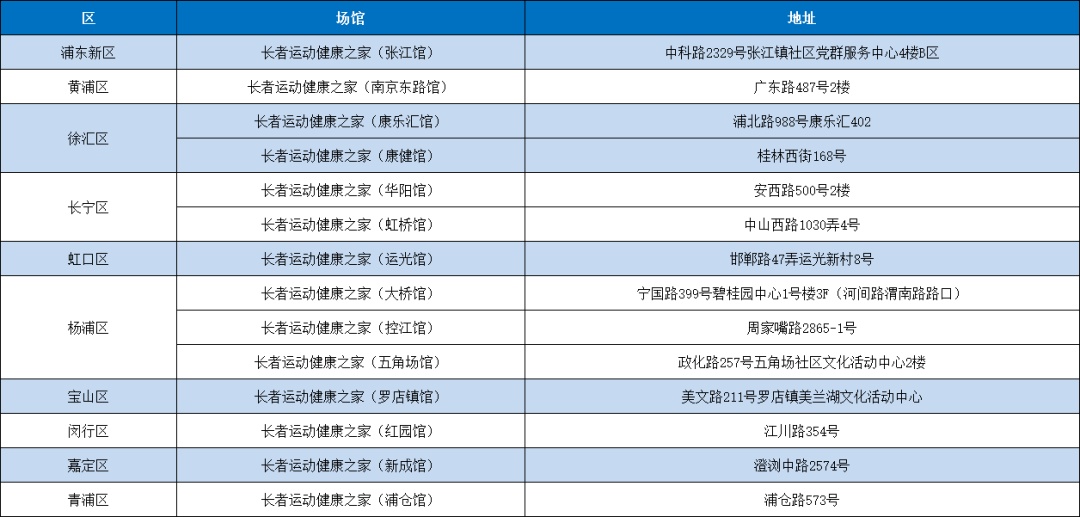 上海体育消费券助老定点场馆名单