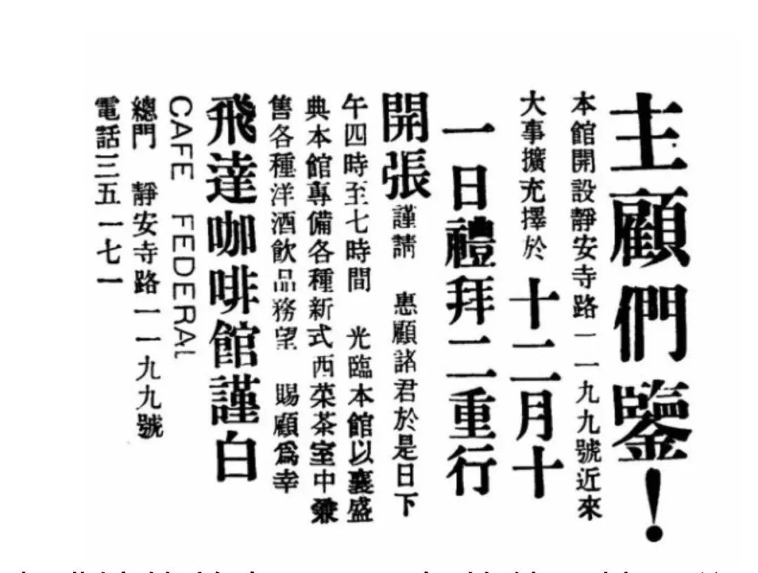 ▲飞达咖啡馆开幕广告,《新闻报本埠附刊》1934年12月11日