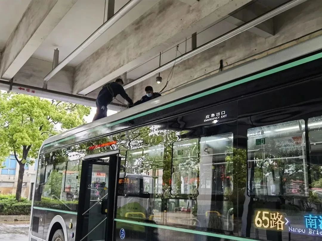 拆下滤网,喷洒消毒剂,再用水清洗,晾干后装上……这一套动作,在杨高公交的修理车间里不断进行着,考虑到未来梅雨、高温等天气因素对车辆的影响,此次检查还特别对各类新能源车辆的高低压电池、电池舱、电机、控制器、电动空压机、电动转向器、电空调、高压线束绝缘等项目进行了重点检查。