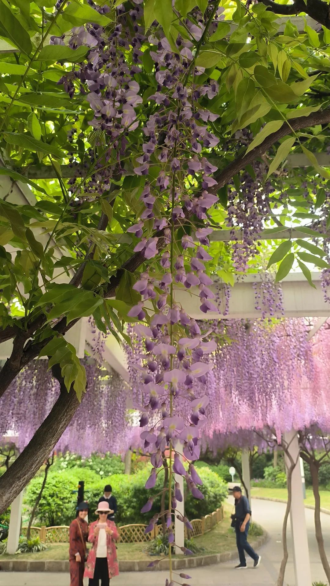 据了解,紫藤是一种具有观赏性的攀援植物,每年会开放两次花。现在正是紫藤的首次开花,花量较大,叶子相对较少,色彩鲜艳,观赏效果十分出色。而紫藤的第二次开花时间则约在每年7月至8月份,花量将会大大减少,叶子数量会增多。