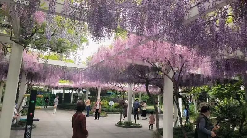 紫藤花是一种优美的攀援植物,通常在每年春季开放,花期长达数周。清涧公园内的紫藤花海已经成为附近市民喜爱的打卡点之一,许多人纷纷前来欣赏和拍照。此外,清涧公园提供了一个理想的户外健身场所,市民可以在花草环绕的环境中锻炼身体、放松心情。