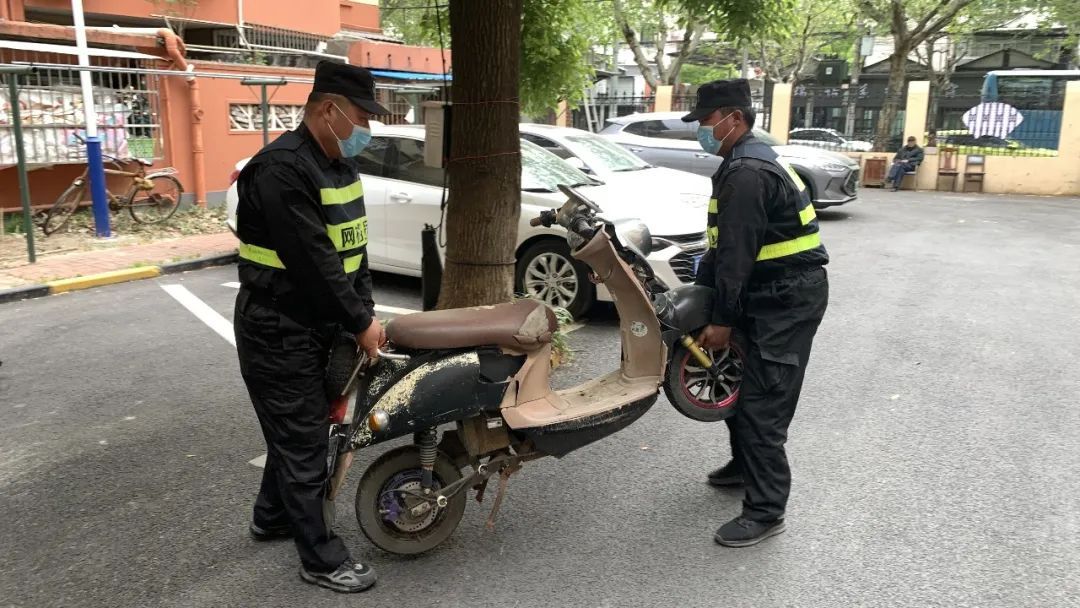 宝山区张庙街道通河八村第一居民区属于老旧小区,因停车位无法满足居民车辆停放的需求,导致小区内停车资源长期紧张。为了方便自己,小区部分居民长期使用废旧自行车、地锁等杂物抢占车位,致使小区内因停车问题不断引发矛盾。针对这个问题,自2023年以来,通河八村第一居民区一方面联合物业加强对居民宣传,号召文明停车。另一方面持续、定期联合多部门,开展对私人物品抢占机动车停车位的专项整治。