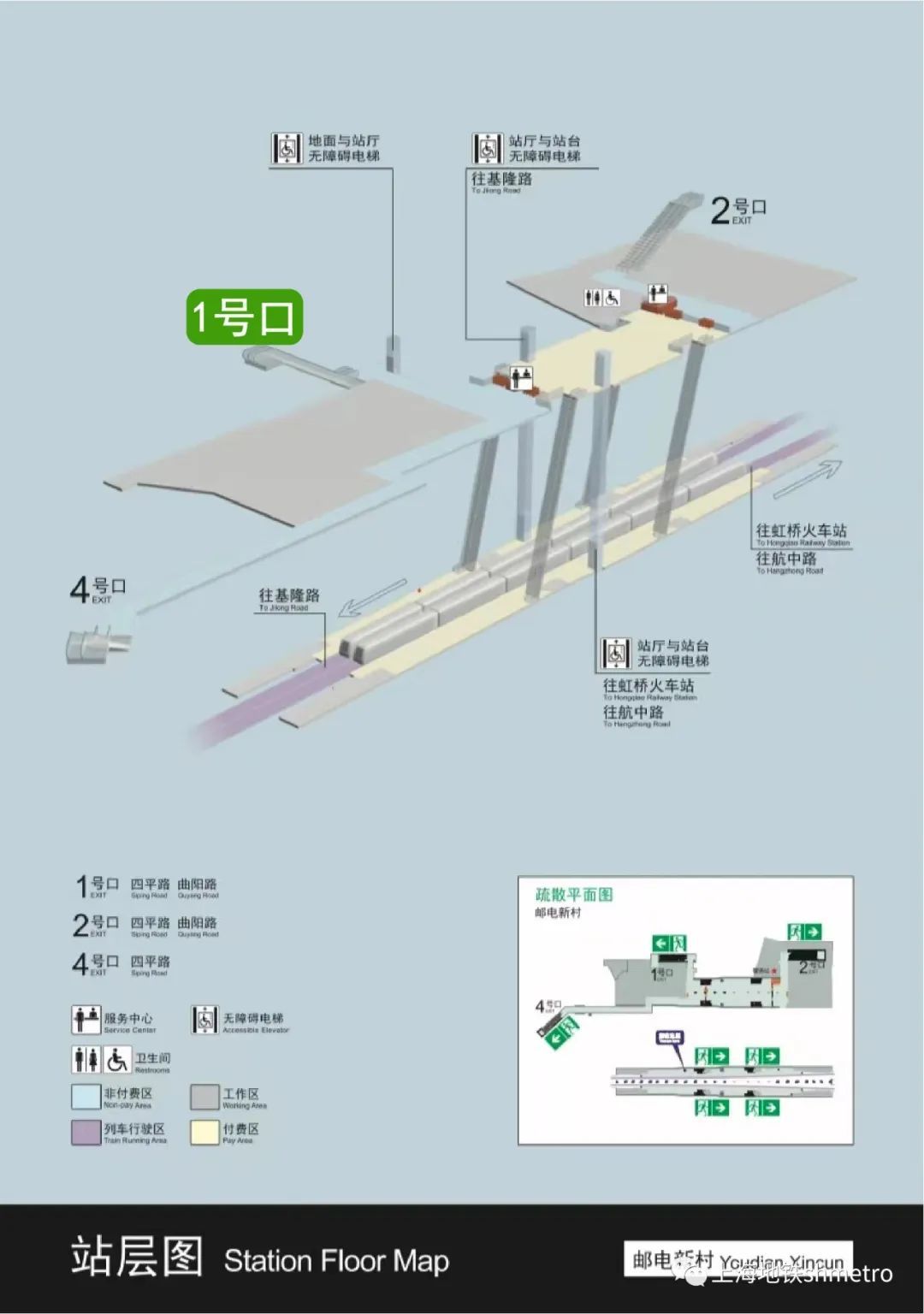 因施工改造完成,10号线邮电新村站1号口和无障碍电梯已具备启用条件,于2023年5月10日1号口和无障碍电梯(站厅—地面)恢复启用。