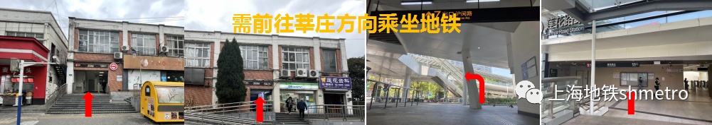 前往莘庄方向:经由6A号口、6B号口进站,7号口出站后至右侧天桥通行至1号口进站。