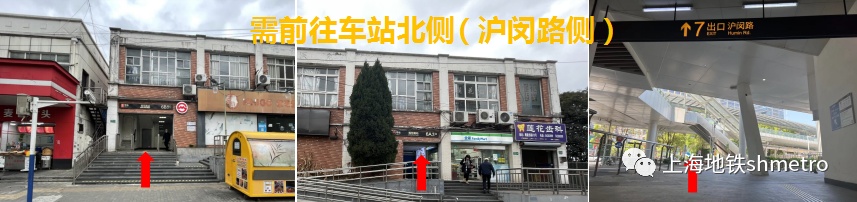 前往车站北侧(沪闵路):请经由6A号口、6B号口进站,7号口出站。