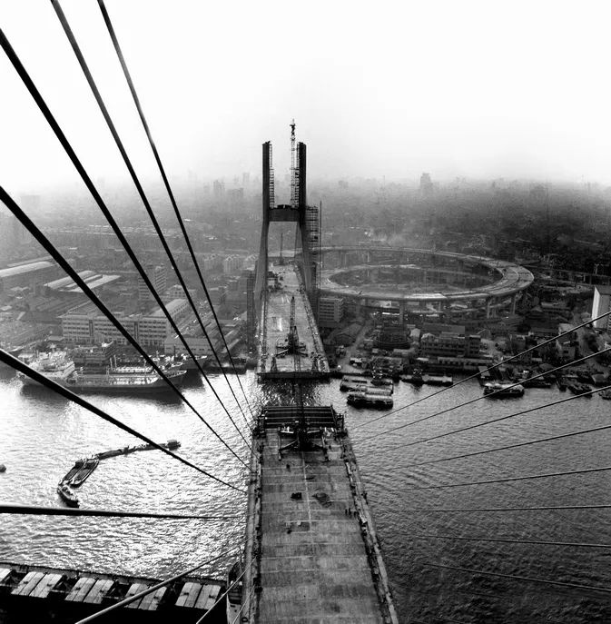 建设中的杨浦大桥(陆杰 摄)