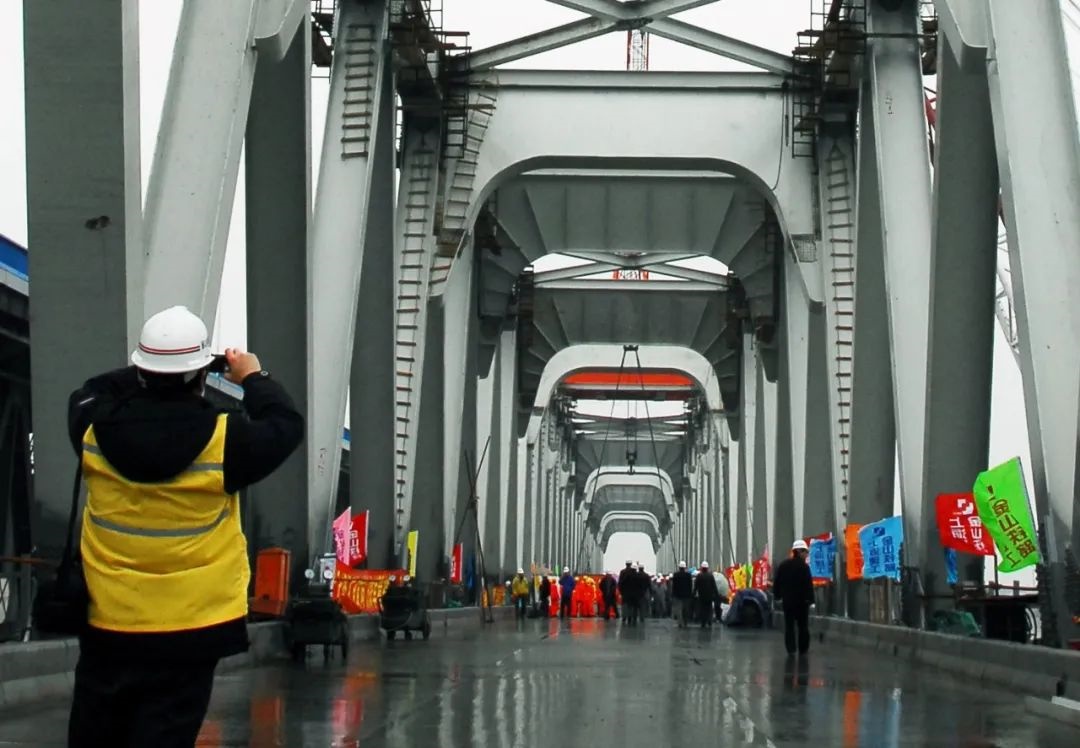 2011年3月,金山铁路改建工程黄浦江特大桥主桥成功贯通(傅国林 摄)