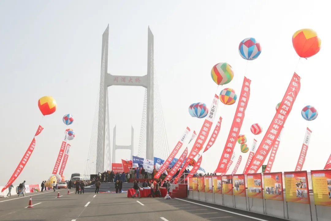 作为世博会重点配套工程,当时世界上跨度最大的双层公路斜拉桥、黄浦江上第8座大桥——闵浦大桥正式通车(王溶江 摄)