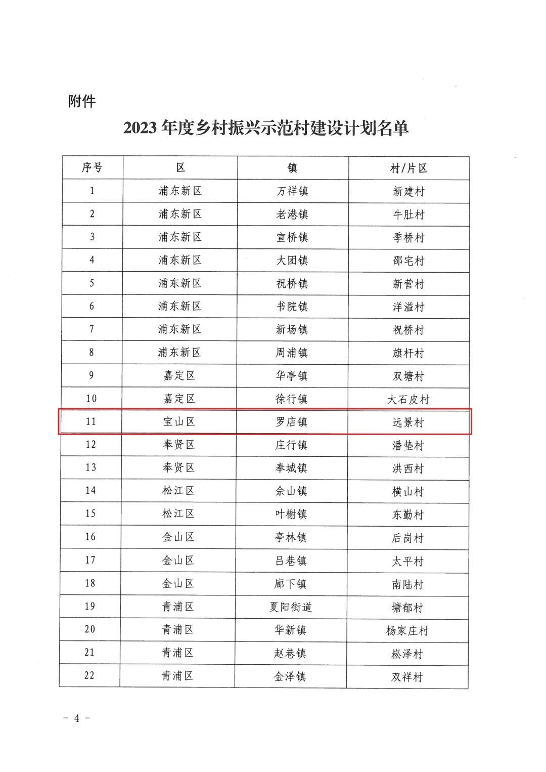 根据《上海市乡村振兴“十四五”规划》(沪府发〔2021〕9号)确定的目标任务,经区申报、市评审,宝山区罗店镇远景村通过上海市第六批乡村振兴示范村遴选。