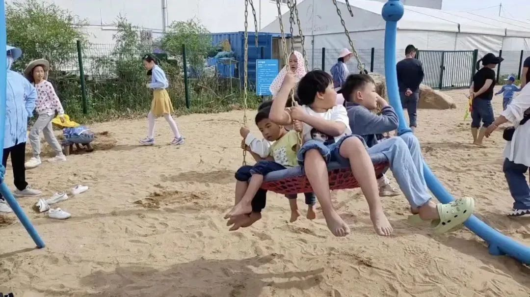 拍照打卡点、荡秋千、滑滑梯、沙滩排球、沙滩拔河、沙滩飞盘、沙地堡垒……