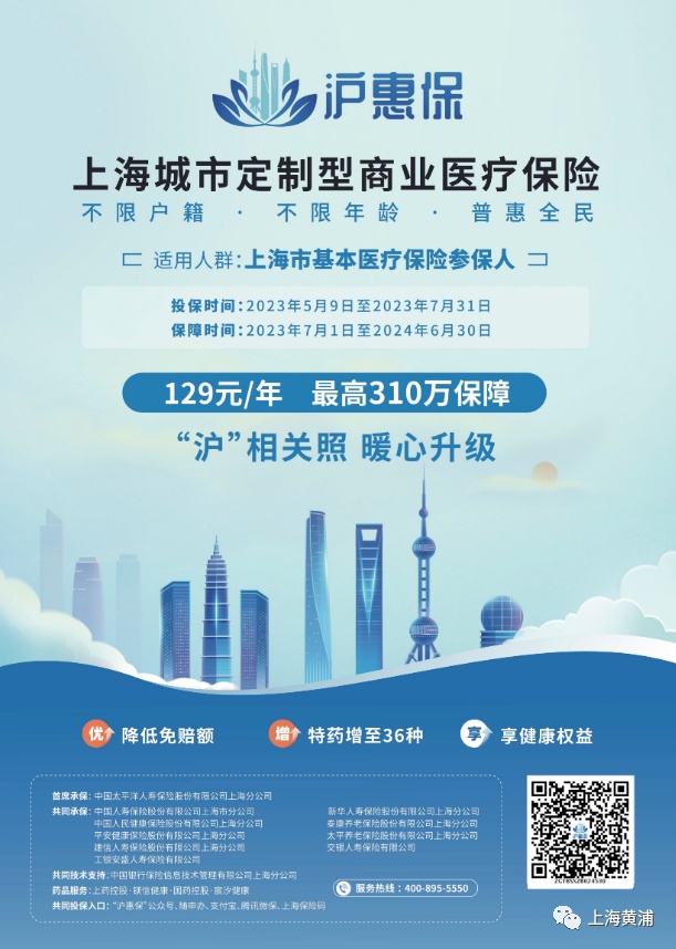本次“沪惠保”投保为5月9日至7月31日,保障时间为2023年7月1日至2024年6月30日。居民朋友可以扫描下面宣传海报中二维码投保。