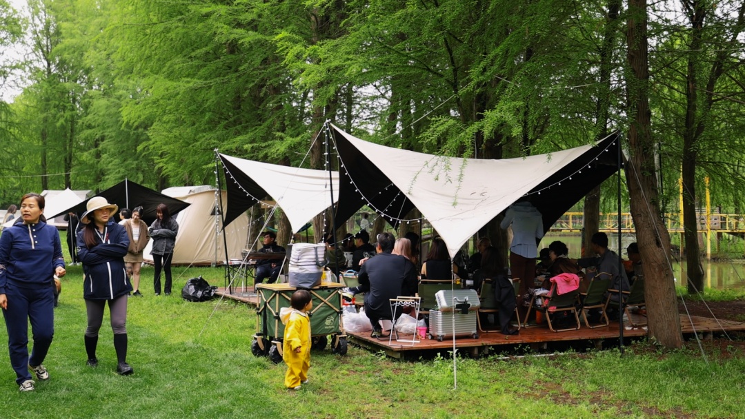 “一月一露”西郊林场营地是松江人气颇高的露营地。营地有四种风格不同的露营区域,分别为大草坪区、树林区、竹林区以及金澜湖区,游客可根据喜好自由选择。