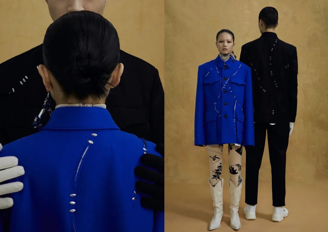 此次上榜的长宁设计师品牌划分在《2022 Fashion IP 100》“设计师/设计师品牌”品类中,均有各自特色的风格标签。如PRONOUNCE珀琅汐是“先锋东方”的代表时尚IP。PRONOUNCE珀琅汐由周俊与李雨山于2016年在米兰创立,在长宁设有品牌分部,品牌主张“性别共享”(Gender Sharing)的穿衣理念,致力于让大家能够从性别、尺寸、颜色、可持续性等维度上,完成“服装共享”这件事。鼓励每个人可以超越限制地选择服装,让每件衣服都适用于不同的性别。PRONOUNCE珀琅汐从品牌建立之初,就坚持对传统中山装服饰款式进行设计研究。品牌旗下瓷碎片系列中山装,以修复瓷器的锯钉作为元素,贯穿裂纹感剪裁的服饰之中,同时,品牌运用签名式当代手法打破重组结构,使其与锯钉镶嵌细节设计相得益彰,兼具东方底蕴和先锋特色。