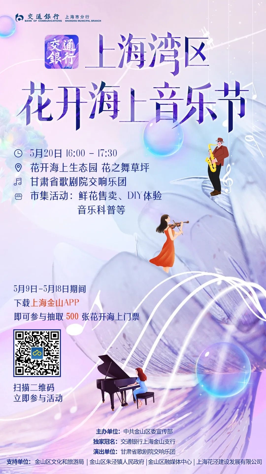 5月20日16:00,上海湾区·花开海上音乐节首场演出将在花开海上生态园花之舞舞台开演。音乐节邀请甘肃省歌剧院交响乐团为现场观众带来视听盛宴。