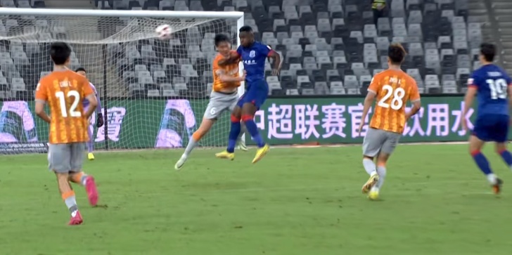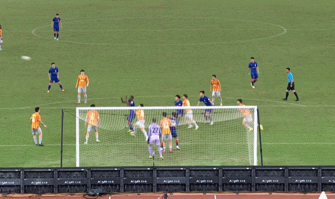下半场,两队变阵。48分03秒,深圳队阿奇姆彭头球破门,但越位在先。