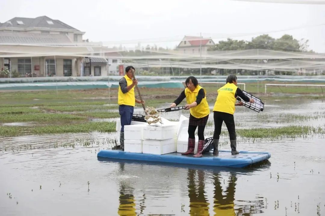 在崇明河蟹集团惠康基地,蟹农们划着筏船,把一箱箱“崇明1号”蟹苗均匀投放在蟹塘内,这些密密麻麻的蟹苗是崇明与上海海洋大学“区校合作”精心培育的产物。