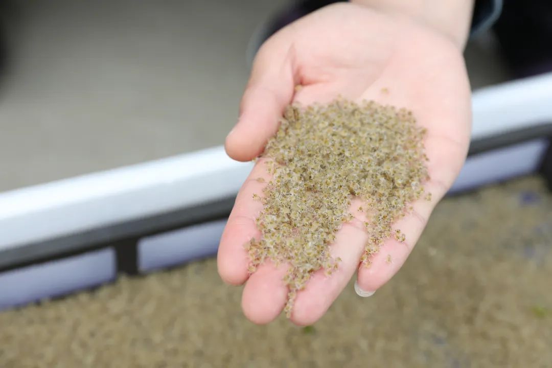 今年繁育的“崇明1号”蟹苗约为1.3万斤,首批投放的蟹苗达1300斤,每亩放养量在3-4斤,本周内,河蟹集团各养殖基地将纷纷“领养”这些蟹苗宝宝。