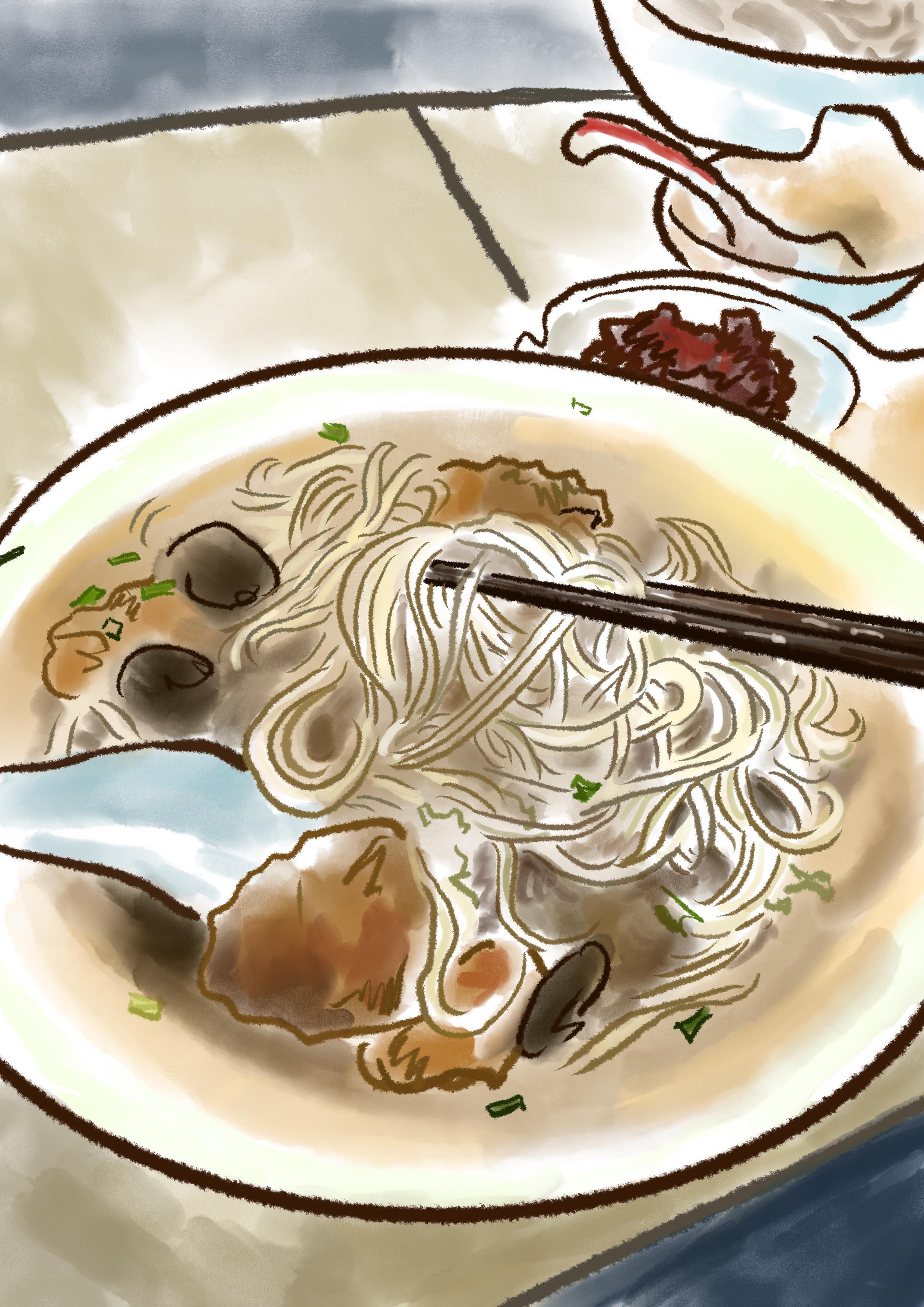 肚子饿了,来碗老字号的烤麸面,劳碌的一天就顺利收工了。