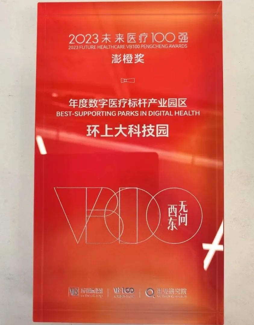 近日,由VB100、动脉网和蛋壳研究院主办,上海张江集团战略合作支持的“第七届未来医疗100强大会”在上海张江科学会堂隆重举办。环上大科技园应邀出席本次大会,并凭借领先的创新服务能力,荣获“2023未来医疗100强·澎橙奖·年度数字医疗标杆产业园区”。