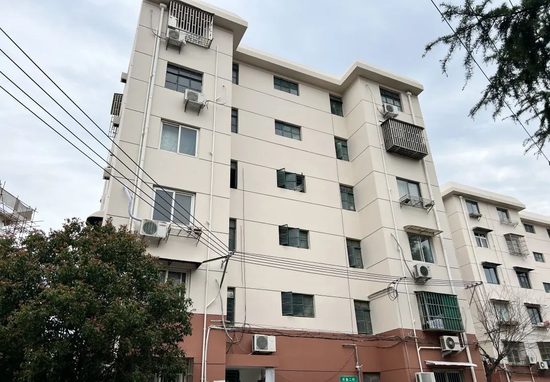 居民楼经历改造,平顶变坡顶,蓝色彩钢板瓦屋面搭配浅灰色檐口,整洁又美观。楼体外墙经过粉刷,焕然一新,底层与围墙统一为深砖红色,上部建筑刷浅米色涂料,视觉效果温暖柔和。居委会干部杨勇告诉记者,小区近30年都没有进行大的翻新,外墙斑驳老旧。“这次改造完之后,小区居民的反响很好,进入小区让人眼前一亮。”