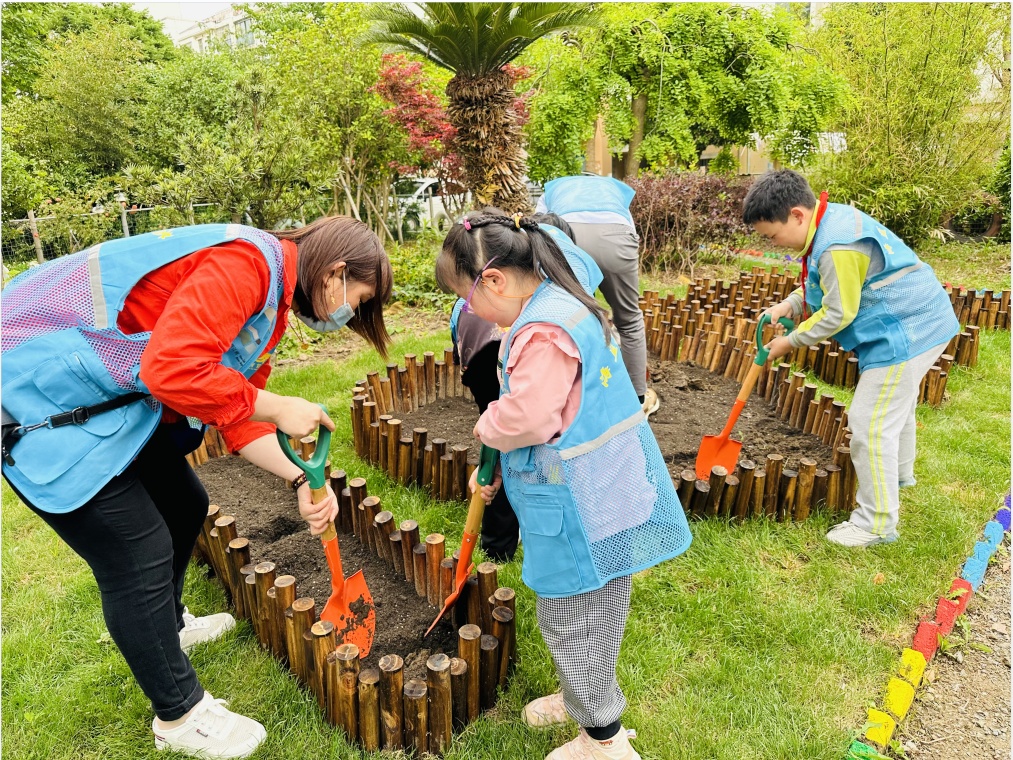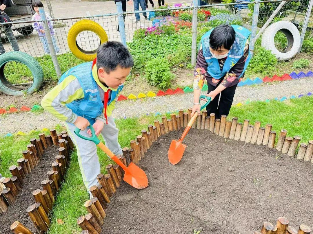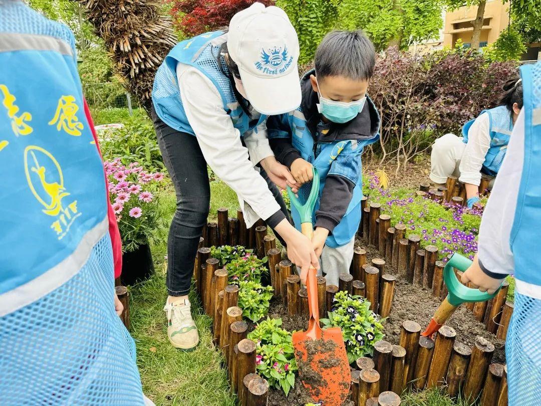 随后,孩子们和家长们一起搬运物料,带上准备好的工具、营养土、花草绿植来到“1号花园”内,在居委工作人员的指导下清理杂物、挖土施肥、植绿添花。在大家的共同实践下,原本光秃秃的泥地摇身一变,成为了一片充满童真童趣的五彩创意花园,呈现出生机勃勃的景象。