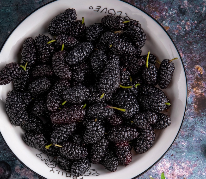 我们常吃的黑桑葚口感比较酸甜清爽,它的营养物质也略高于其它桑葚,因为它的花青素含量、铁元素含量也较高。