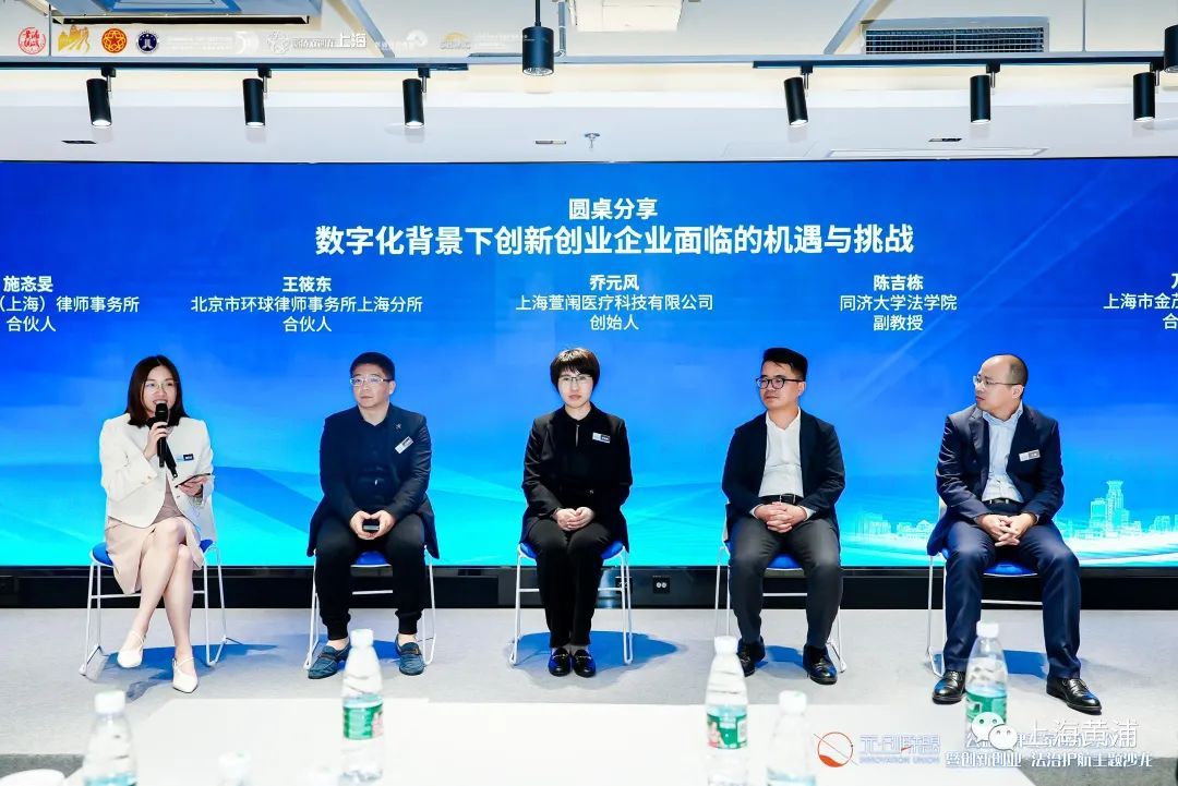 成立仪式后,区委统战部、区司法局、区侨联等联合各方,共同举办了“创新创业•法治护航”主题沙龙。上海国际经济贸易仲裁委员会秘书长王唯骏带来了《法治助力创新创业企业合规发展》的主题分享。本次专家团成员与来自拟上市企业、投资机构、会计师事务所的嘉宾分别作了《创新创业企业如何突破融资瓶颈》和《数字化背景下创新创业企业面临的机遇与挑战》的圆桌分享。
