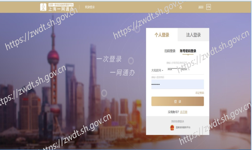 在该步骤,需登录关联监护人的“一网通办”或“随申办”实名账号(信息核对表/信息登记表中的儿童关联监护人)。