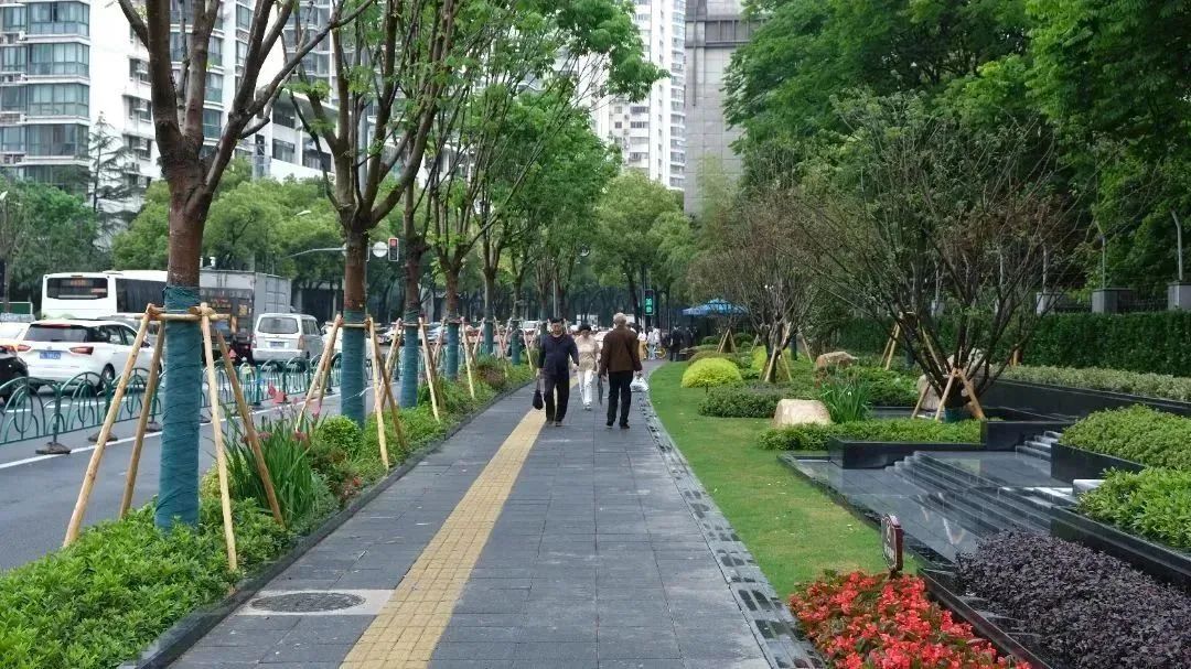 随着轨交14号线通车,2023年2月起,轨交14号线武宁南路沿线绿化恢复工程陆续开工,涉及武宁路站、武定路站等。五一前夕,武定路站附近的沿街绿化恢复工程顺利完工,正式面向大众开放。