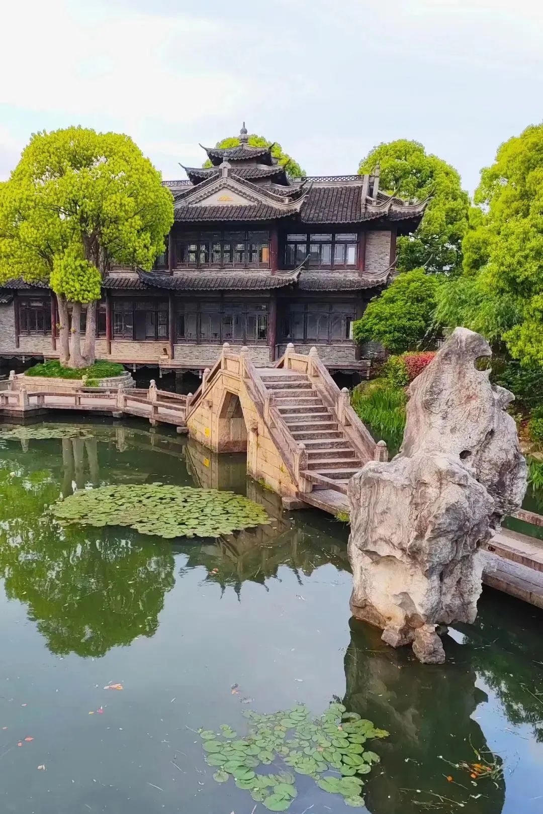 韩湘水博园占地400亩,江南园林该有的景这里都有。亭台楼阁、水榭廊桥……水博园处处都是古建筑;红柱、雕花、飞檐翘角……都做得精细。