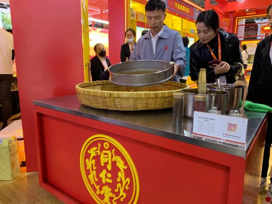 来自上海的东方美谷展区、豫园股份展示区、红双喜、百年老字号品牌马利画材等都一一亮相,体现独特的上海本土品牌。来自广东的新会陈皮村,带来了各年份新会陈皮的品鉴,一杯杯热气氤氲中,独特的陈皮香散发开来;北京同仁堂在活动现场展示了传统中药材炮制技艺,不停地刷水、摇晃、过筛,一堆药粉逐渐变成了药丸,让观众感受到传统中医的魅力;羽绒服品牌鸭鸭现场展出了一件衣长2.6米、宽1.3米的超大羽绒服,极具视觉冲击力。