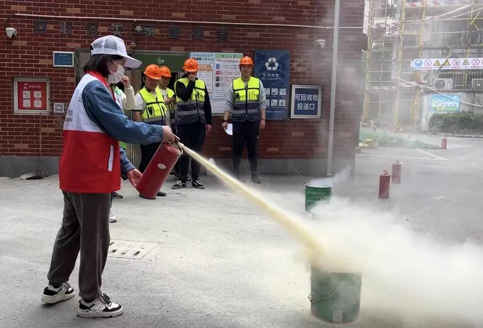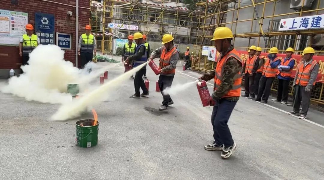 活动中,上海建工一建集团的消防宣传员通过典型火灾案例警示参与者重视消防安全,并对火灾报警、人员疏散、逃生自救、常用消防器材操作、扑救初起火灾注意事项等消防安全知识进行了详细讲解。现场工人和居民代表在消防宣传员的指挥下进行了油桶着火和实地灭火模拟演练。
