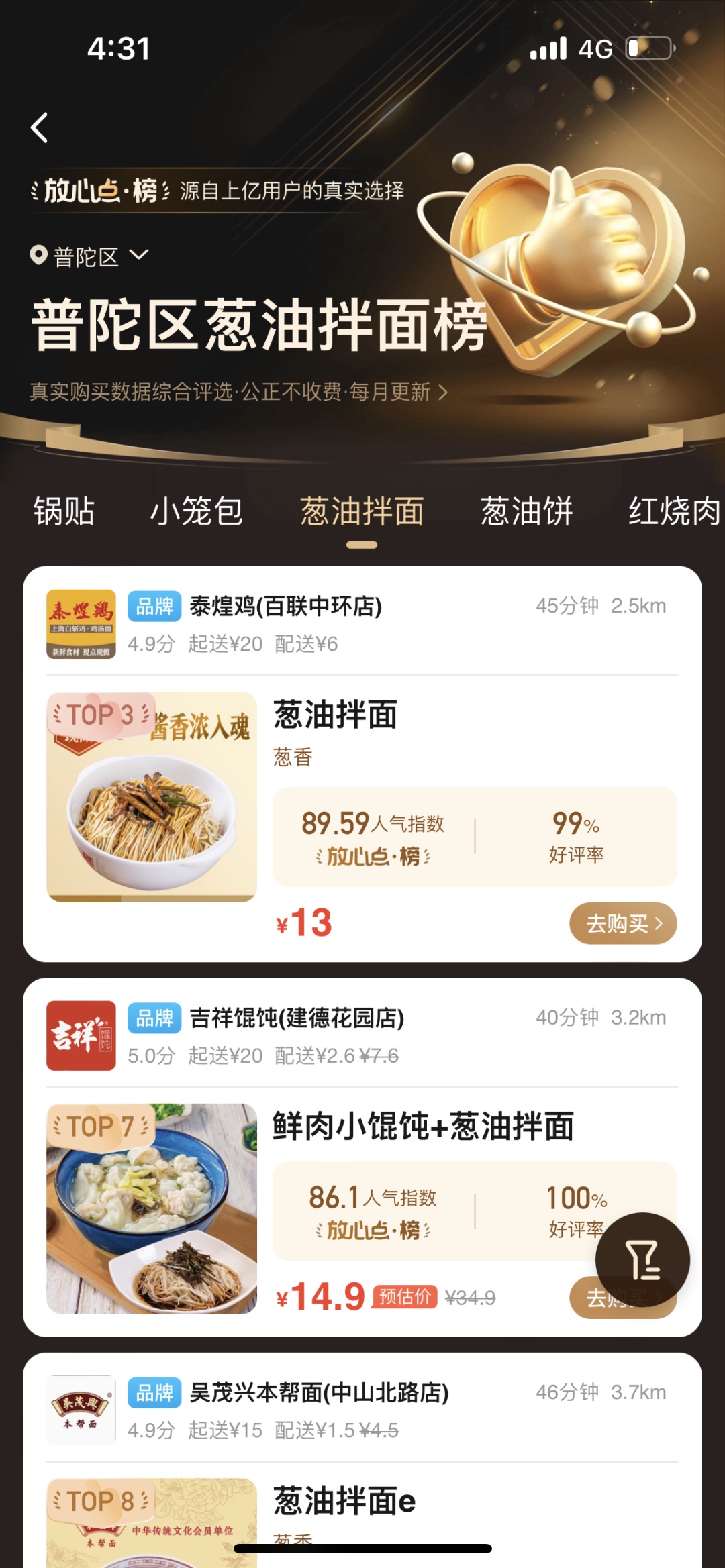 普陀区葱油拌面榜单