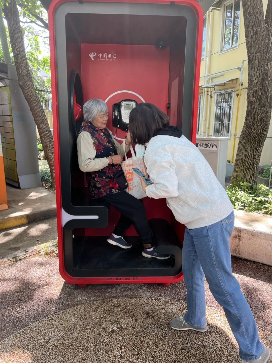 徐汇区凌云街道梅陇六村小区入口处多了一座红色的智能电话亭,这个电话亭还有个名字叫“hello老友亭”,它有许多暖心的功能设计可以帮助市民,特别是老年人享受数字生活的便利。为了让更多的老年人学会使用这些功能,5月9日,社区居委会举办了一次“数字不掉队”讲座,邀请电信工作人员讲解智能电话亭相关功能的操作手法。
