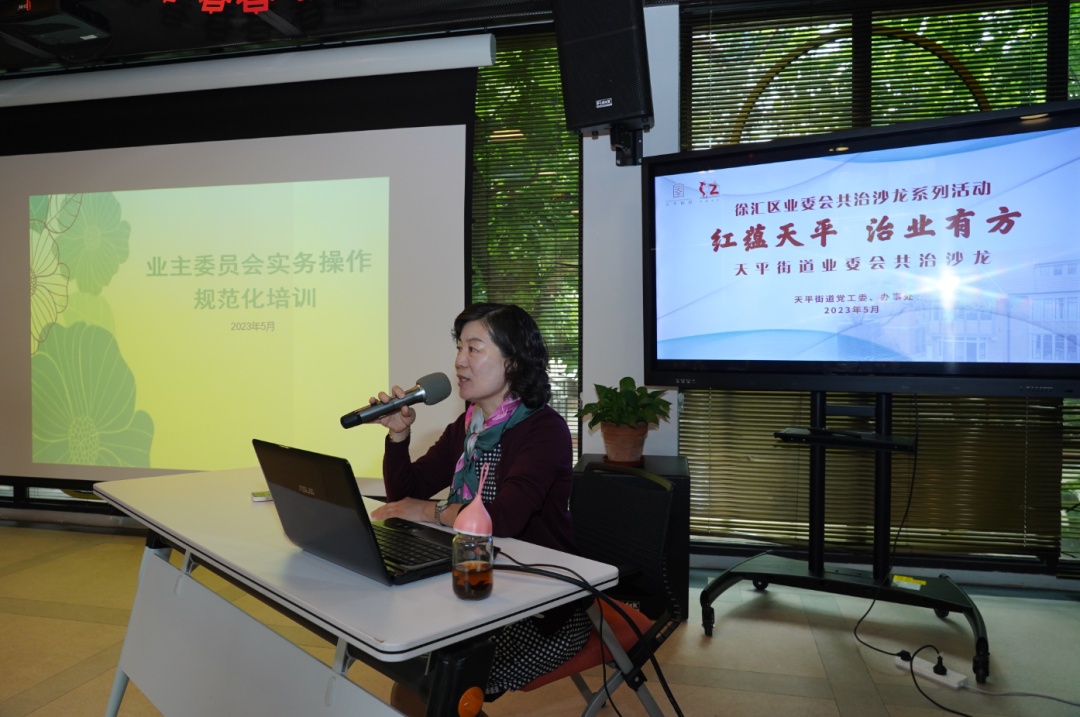 揭牌仪式后,徐汇区业委会共治沙龙专业指导委员会专家鲍吾英就业委会规范化运作主题结合实操为与会者作了专题培训。