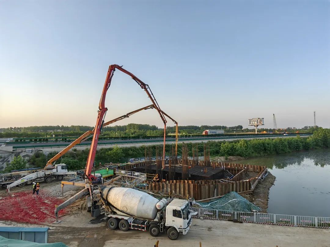 据悉,当日浇筑的为622号主墩承台,该承台长21.6米、宽24米、高5米,钢筋重达约380吨,混凝土方量约2400立方米。项目建设管理单位皖赣铁路安徽公司会同施工单位中国铁建大桥局超前谋划,科学组织,召开专题施工会,认真落实技术交底,优化施工配置,强化现场施工组织,顺利完成首个主墩承台浇筑。