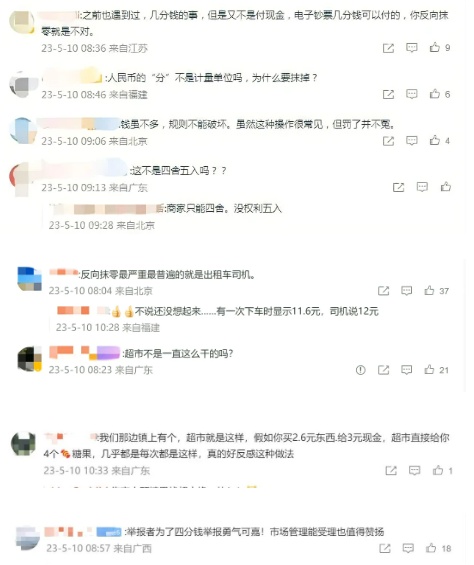 又据澎湃新闻报道,此前,李女士到重庆沙坪坝区陈家桥医院急诊部就诊,用手机支付了4.30元的检查费用,翻看收费单却意外发现自己被多收了5分钱。“发票上显示合计4.25元,但我手机支付的是4.30元。”该收费室工作人员称,“就是四舍五入,5分直接进到1角了”,“医院系统就是这样设置的,上了5分就收1角,4分(以下)就舍掉了。”此事经媒体报道后引发关注,该医院做出回应称已将系统调整为精确到分。