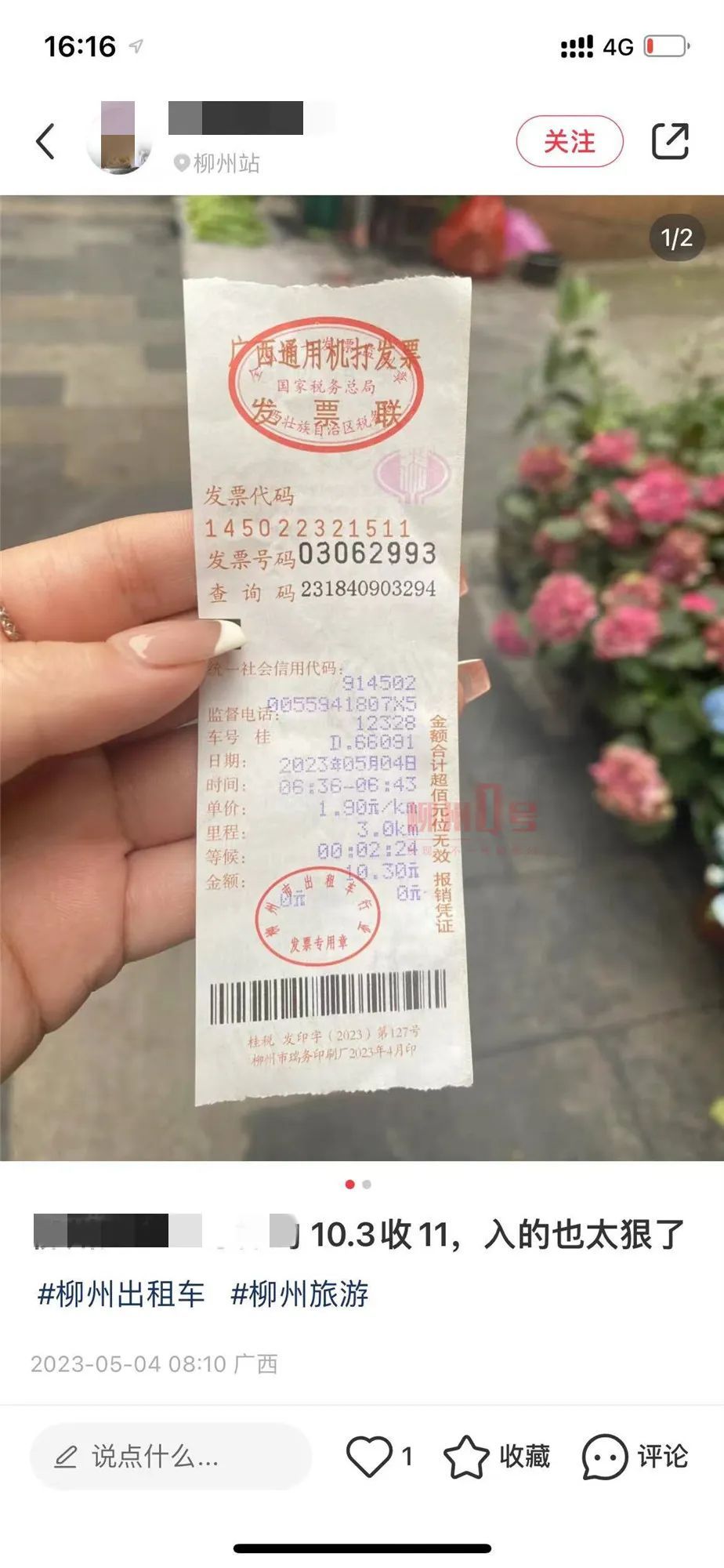5月4日,一名自称去柳州旅游的网友“i姜姜姜姜姜”在网上发布一条信息,称遇到出租车司机“反向抹零”——原本10.3元的运费,司机却收了11元。根据网友反映情况,市交通运输综合行政执法支队主动出击,并于5月5日上午,对当事人依法立案进行查处。