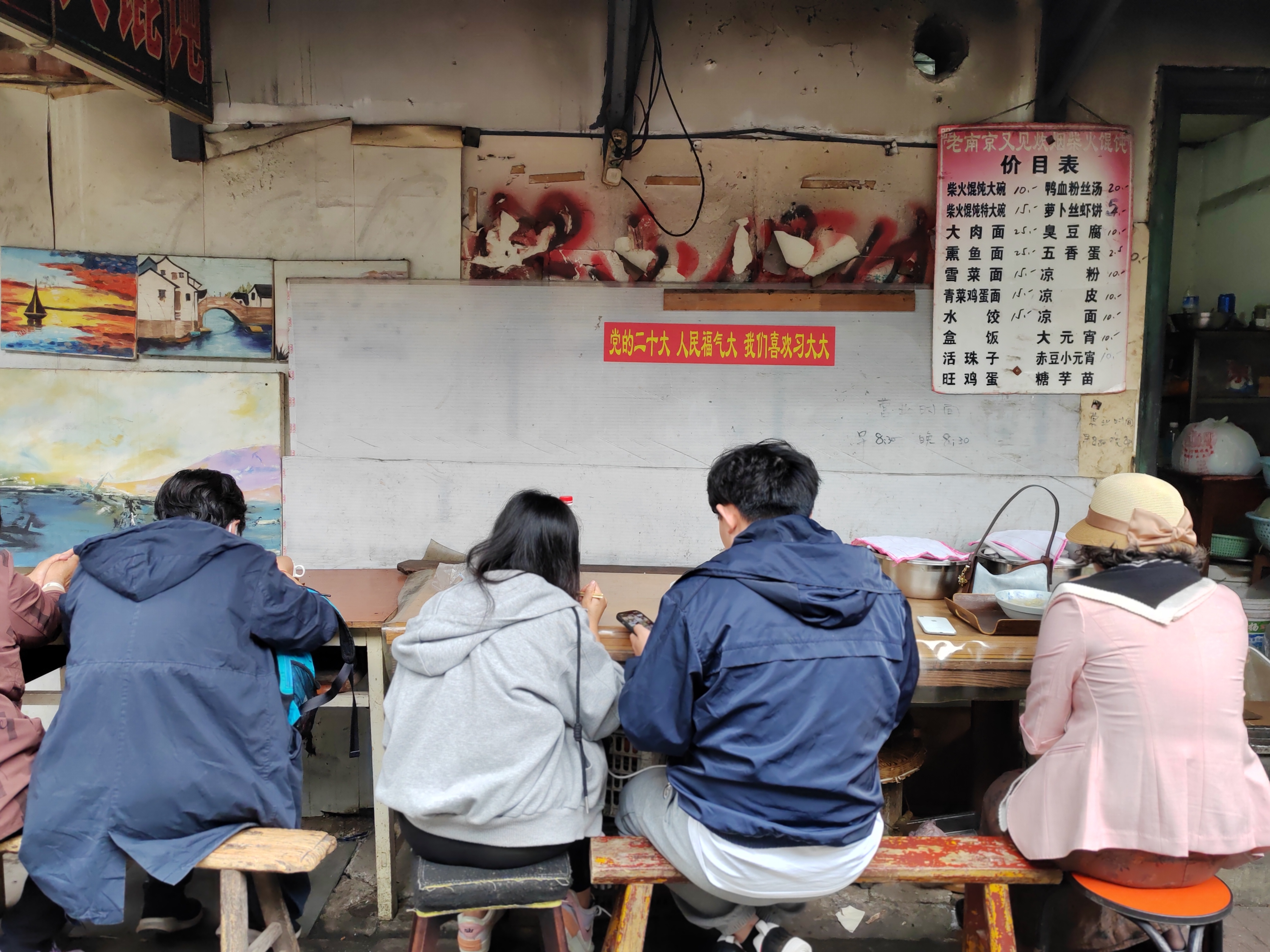 坐落于著名的老门东历史文化街区,这爿小店永远是这儿最有人情暖意的地方。“喝馄饨”者不乏从外地慕名赶来,有人边等馄饨边发小红书,有人扛着长枪短炮,也有大学生腼腆地藏在人群背后,悄悄地为毕业设计或课程作业搜集素材。