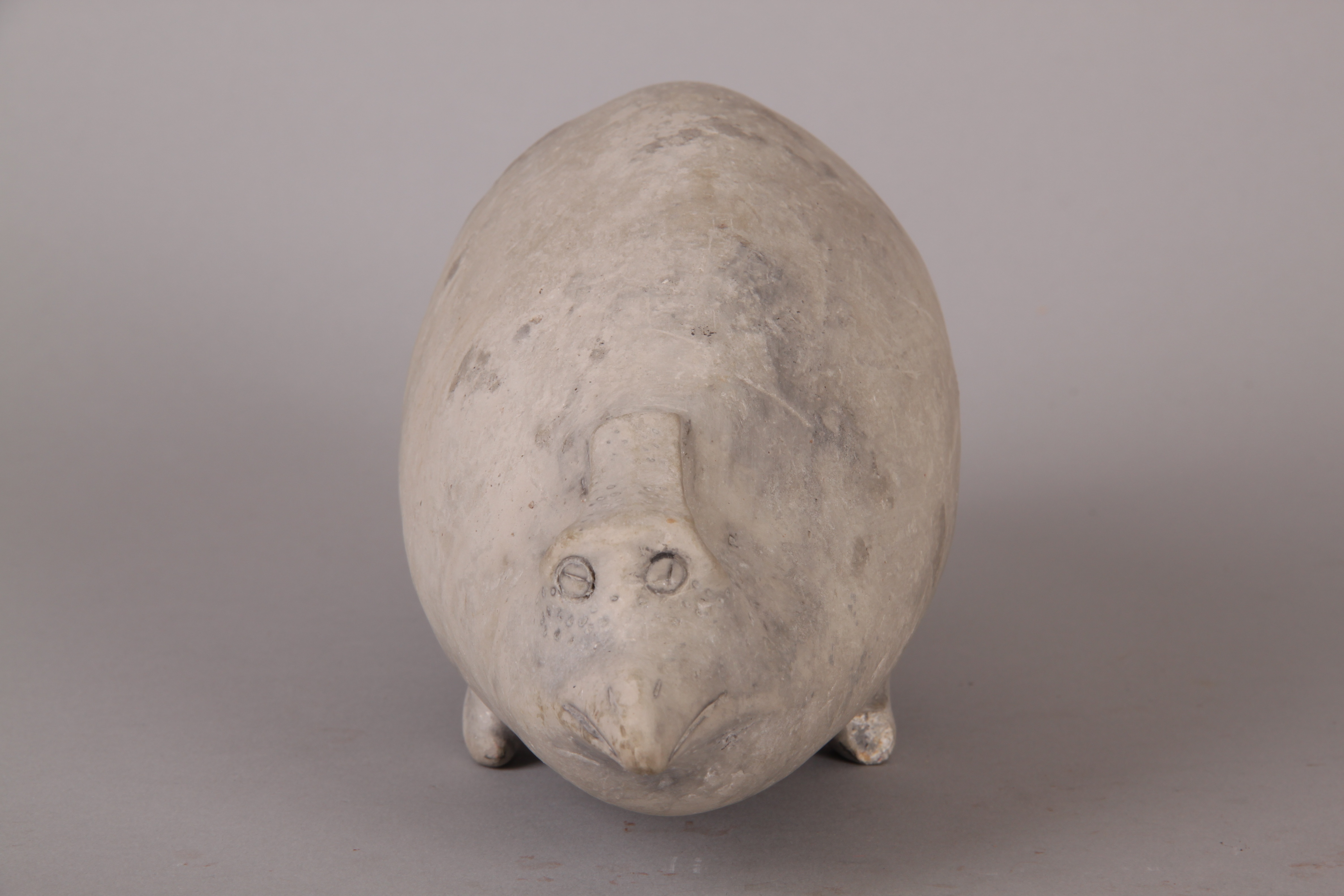 南京博物院收藏的灰陶江豚形壶是良渚文化器物,1960年出土于江苏吴江梅堰遗址中,距今4500年左右。它俯首翘尾、尖嘴睁眼,生动逼真、悠然自得的神态让人忍俊不禁。壶的腹部下面有三个扁足支撑点,稳稳地托住饱满的壶身,注水口设在江豚微微上扬的尾部,使用起来相当便利。