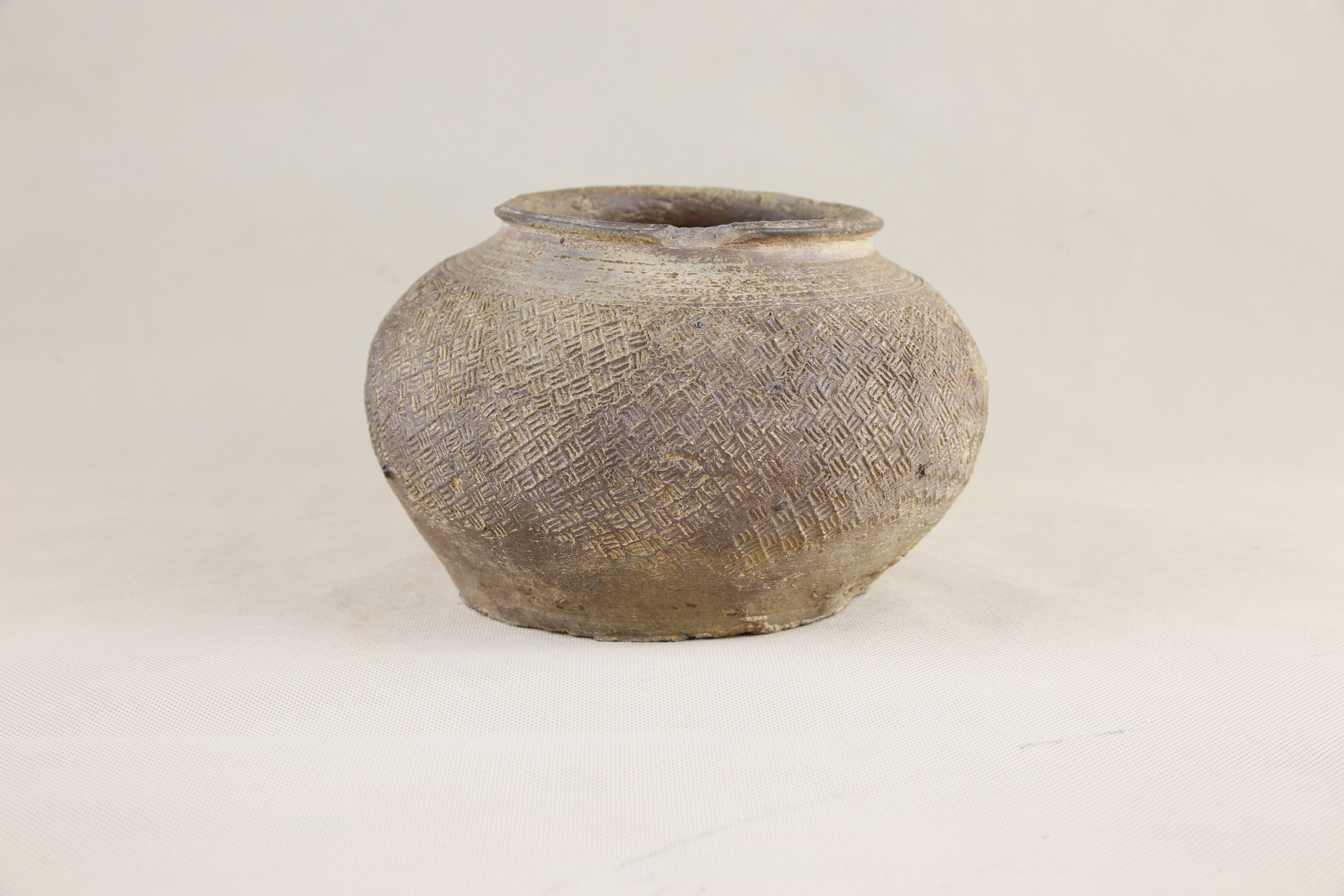 阖闾城遗址博物馆陈列着一批特殊的陶器——印纹硬陶。印纹硬陶是中国青铜时代(夏、商、西周至春秋时期)至汉代流行于长江中下游和东南沿海地区的一种日用陶器,质地坚硬,表面拍印几何图案。这是以一种铁含量较高的黏土为原料,在1100摄氏度左右的高温下烧制而成。制作的时候匠人一手在器内撑托,一手持表面有几何花纹的陶拍在器表轻轻拍打。